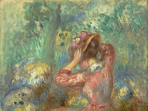 Image credit: Pierre-Auguste Renoir, Woman Arranging Her Hat (Femme arrangeant son chapeau), 1980, Oil on canvas, 10 5/8 in x 9 in, High Museum of Art, Gift of Micheline and Bob Gerson, 2008.165