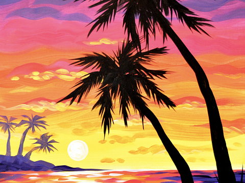 Paint your way to paradise! Join artist Amy Brauer as she shows how to create this brilliant beachy sunset, step-by-step.